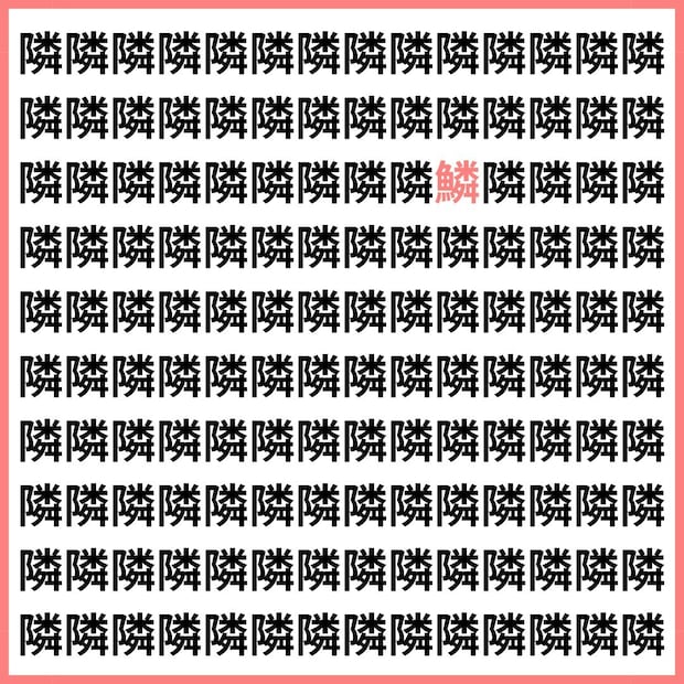 たくさんの「隣」の中に、1文字だけ違う漢字が混ざっています。