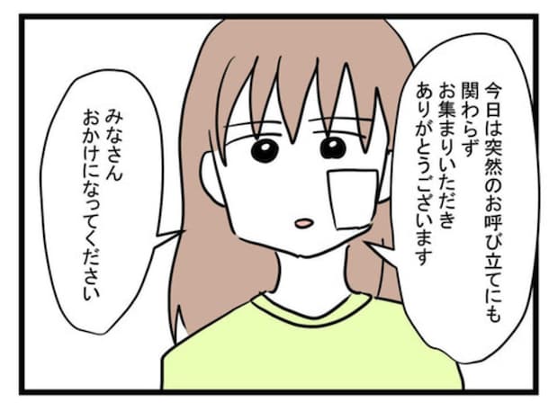 話し合いの場は整いました。かすみさんは、今までのことを両家の前で打ち明けます。
