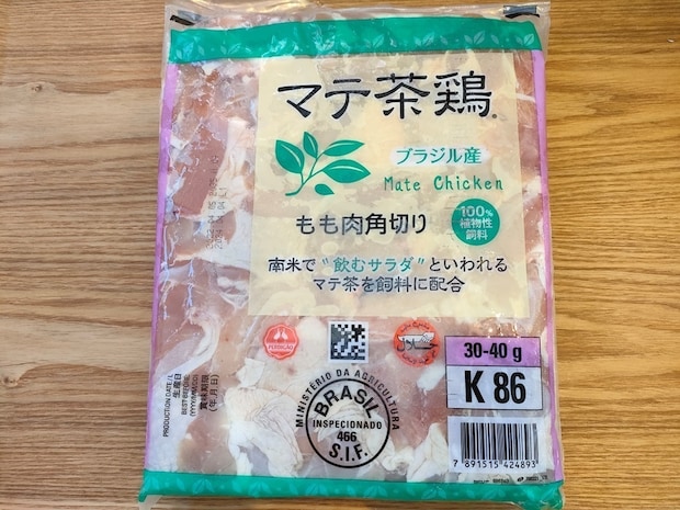 30〜40gに切られたもも肉が2kgはいったマテ茶鶏。