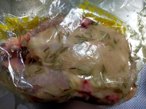 解凍したら下味をつけて冷蔵庫に寝かせます。