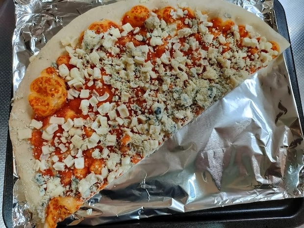 生地は薄めでもっちり。ブルーチーズの香りが焼くととても風味豊かになります!