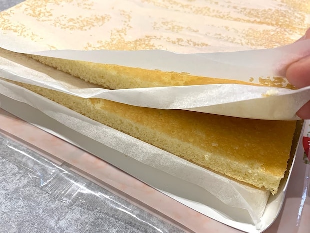スポンジシートの表面はシロップのようなものがかかっています。