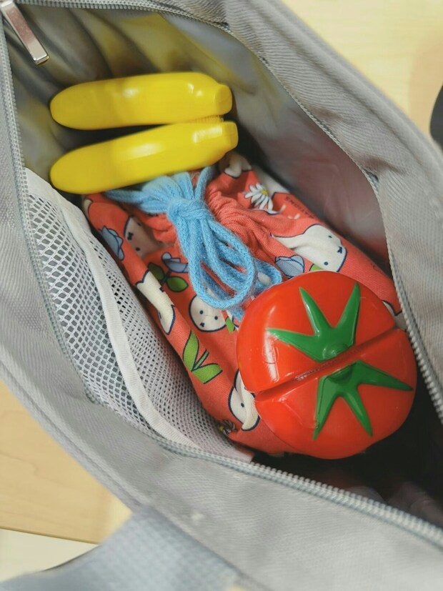 職場でお弁当用を冷蔵庫に入れようと思ってバッグあけたらバナナとトマト入ってた😂息子が入れてくれたみたい😂