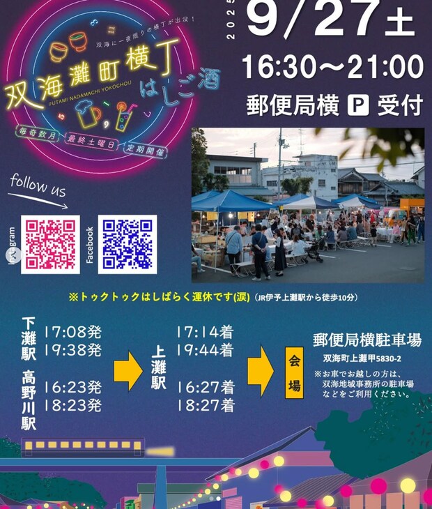 2025年9月27日(土)の夜は、ぜひ海町上灘へ。「双海灘町横丁はしご酒」で、記憶に残る一夜を過ごしてみませんか?