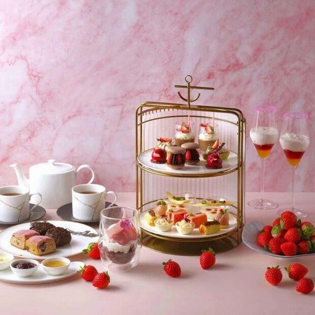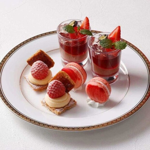 冬季限定で、真っ赤な“いちご”の魅力を堪能することができる華やかな色合いに心ときめく「苺のアフタヌーンティー」が登場。グラスに苺とラズベリーのジュレとチョコレートパンナコッタを重ねエルダーフラワーゼリーをトッピングしたヴェリーヌや、苺のバタークリームで仕上げたオペラのほか、ミルフィーユやマカロン、ガナッシュなど、バリエーション豊かな愛らしい苺スイーツがティースタンドを彩る。