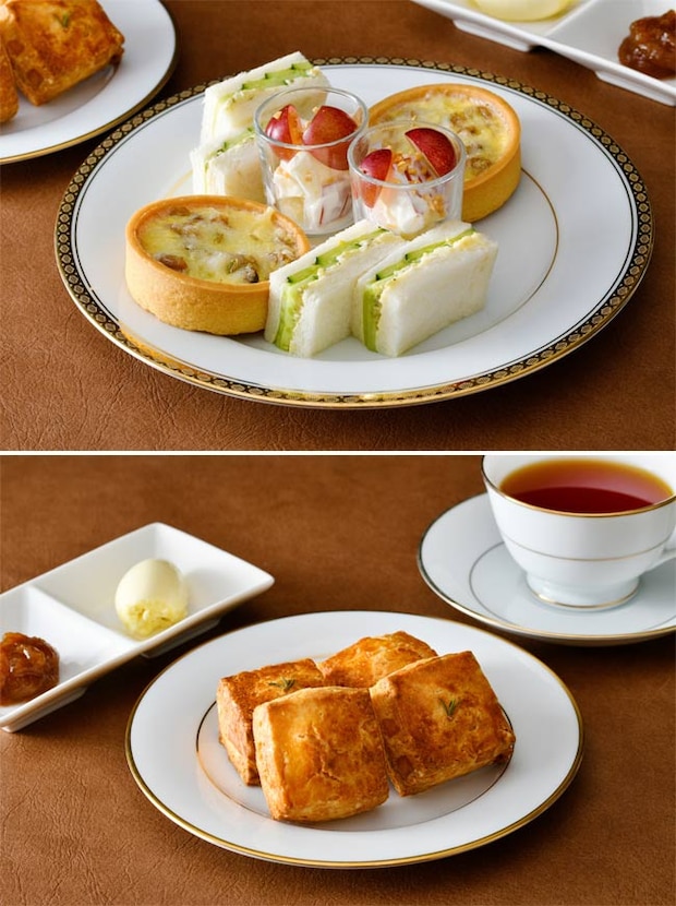 セイボリーには「栗ときのこのキッシュ」や「葡萄・りんご・セロリのサラダ」、王道を極めたおいしさで人気の「キューカンバーサンドウィッチ」が用意される。