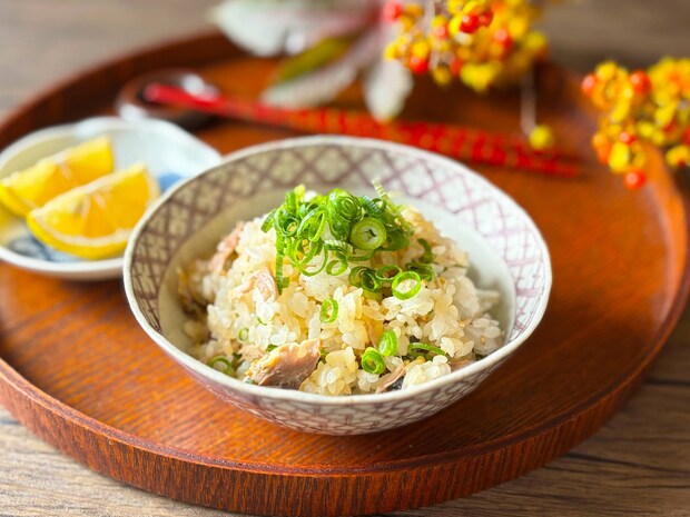 温かいご飯にほぐした焼き鯖とみりん、しょうゆを混ぜ、白いりごま、小口ねぎを混ぜて完成です。