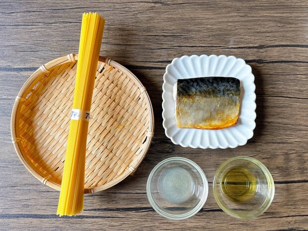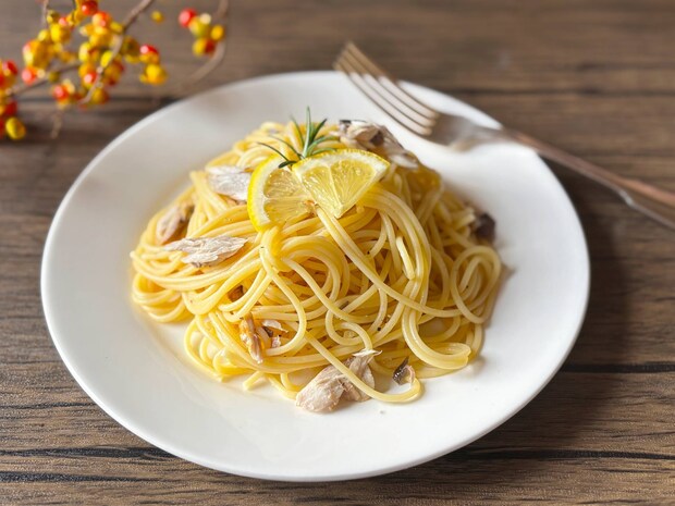 レモン果汁とオリーブオイルを組み合わせると、さっぱりとした焼き鯖のレモンパスタに仕上がります。さば特有の脂を爽やかに味変して、飽きずに楽しめますよ。夏場は冷やしパスタにしてもGOOD。そのときは味付けは少し濃いめにしてくださいね。材料(1人分)