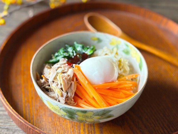 彩りが美しく食欲をそそる焼き鯖の韓国風ビビンバ風丼。焼き鯖の旨みとコチュジャンの旨辛い味わいで食べごたえ抜群です。ナムルをたっぷり盛り付ければ、野菜も自然に摂れて言うことなし!ひと皿で大満足のひと品です。材料(1人分)
