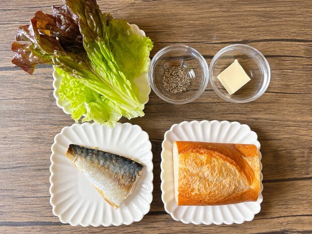焼き鯖は、実はパンにもよく合います。フランスパンにバターとサラダ菜と一緒に挟むだけで、余った焼き鯖が“映えるひと品”に変身!シンプルながらバターと黒こしょうが相性抜群で、なんともクセになる味わいです。お好みでチーズや玉ねぎ、トマトなどをプラスしても。材料(1人分)