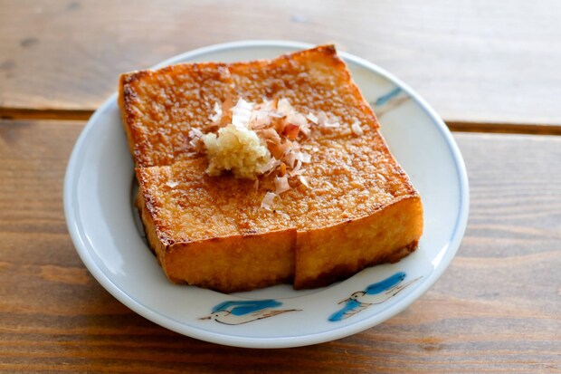 厚揚げ本来のおいしさをダイレクトに感じられるのが特徴の食べ方です。お好みでおろししょうがやかつおぶしをのせて風味を足してもおいしいですよ。