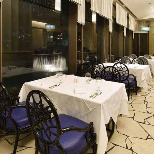 【幕張】明るく開放的な店内と、窓の外に吹き上がる噴水が優雅な時間を演出