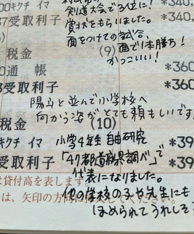 ペーパーレス化が進む中ですが「通帳にメッセージを書く」というのはとてもいいアイデア。親からわが子への愛情を感じる素晴らしい投稿でした。