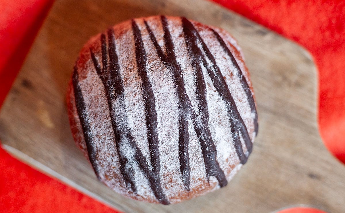 生地の中にチョコクリームを注入し、さらにチョココーチングを線がけしたという同商品。表面にはたっぷりの砂糖がまぶしてあって、セブン-イレブンいわく、“食べ進みのよいドーナツ”らしいですよ。