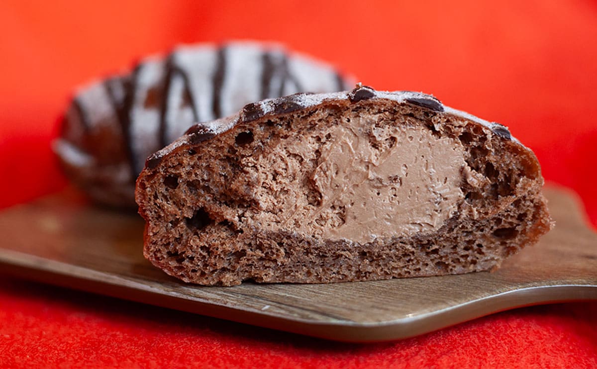 今度は、中身を見るために半分に切ってみました。チョコクリームがたっぷり入っていて、テンションがあがりますね。