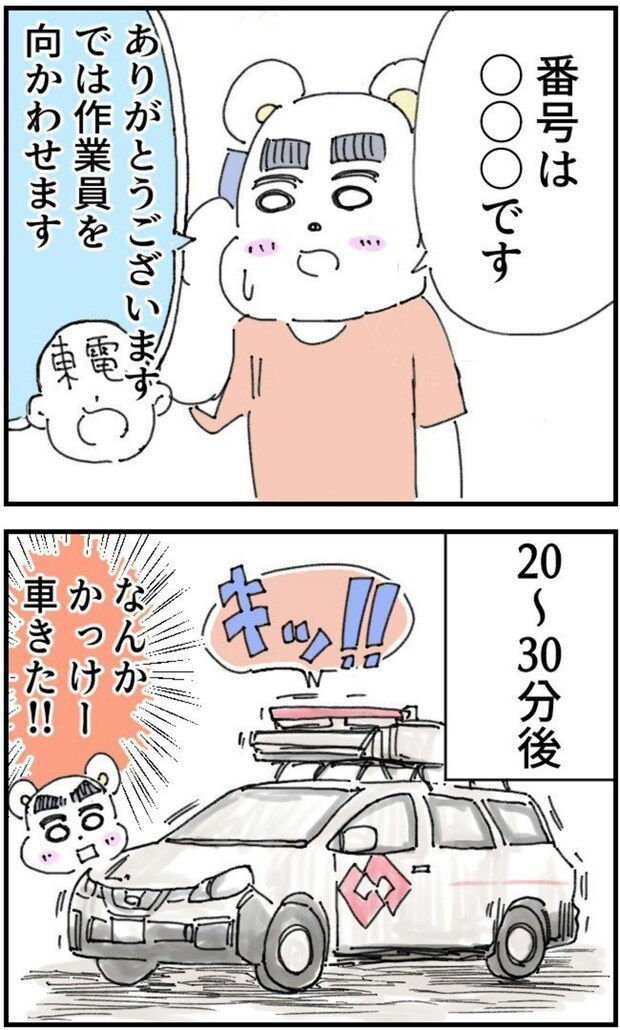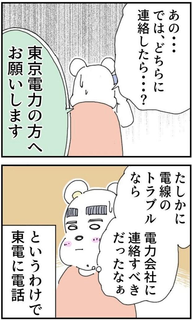 この投稿には「ちゃんと対応してくれた東電の人に感謝ですね エッセイもっと見たいです」「引っかかりますよね電線って。」といったリプライがついていました。