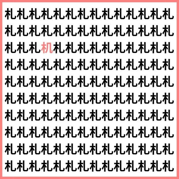 たくさんの「札」の中に、1文字だけ違う漢字が混ざっています。