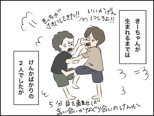 そんなきーちゃんが生まれるまではけんかばかりのお兄ちゃんたちでしたが、今はきーちゃんがすかさず間に入って仲裁をしてくれます。