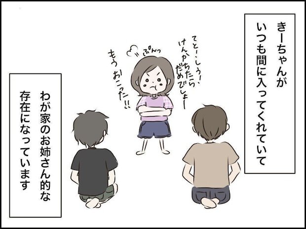 2人に説教したり、泣いてるほうをなぐさめたり、1番年下ですがお姉さん的な立ち位置でわが家の平和を守ってくれています。