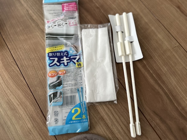 冷蔵庫の下や家具のすき間、サッシの溝など、手が入らない場所の掃除にぴったりなのが「取り換え式スキマ棒」です。
