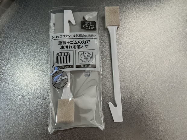 「重曹」タイプはシロッコファンや換気扇の掃除に最適とありましたが、実際に使ってみると、ファンの羽根にフィットせず…。