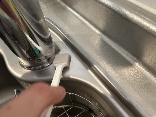 先端が溝にハマるので、ハンドルの根元や細かいすき間の汚れをかき出せます。