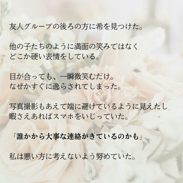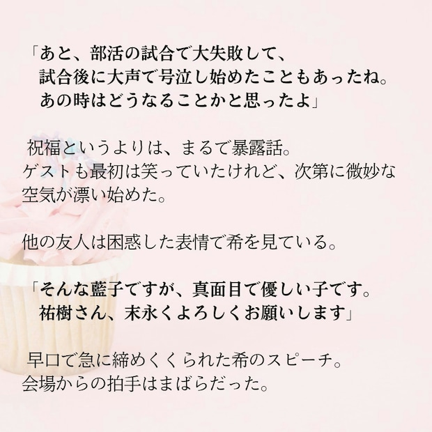 結婚式でのスピーチを咎めようとしていましたが、希の妊娠報告を聞き、お祝いすることに。ですがその後、流産したと聞かされます。このような状況では、結婚式の件は聞けませんね…。