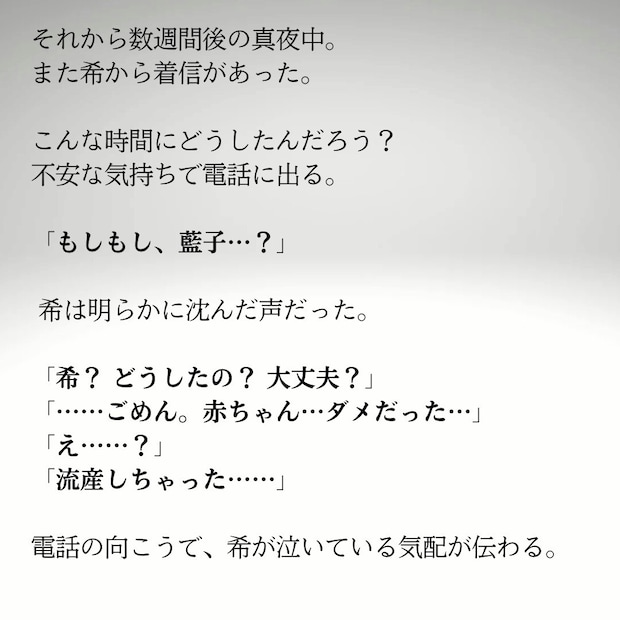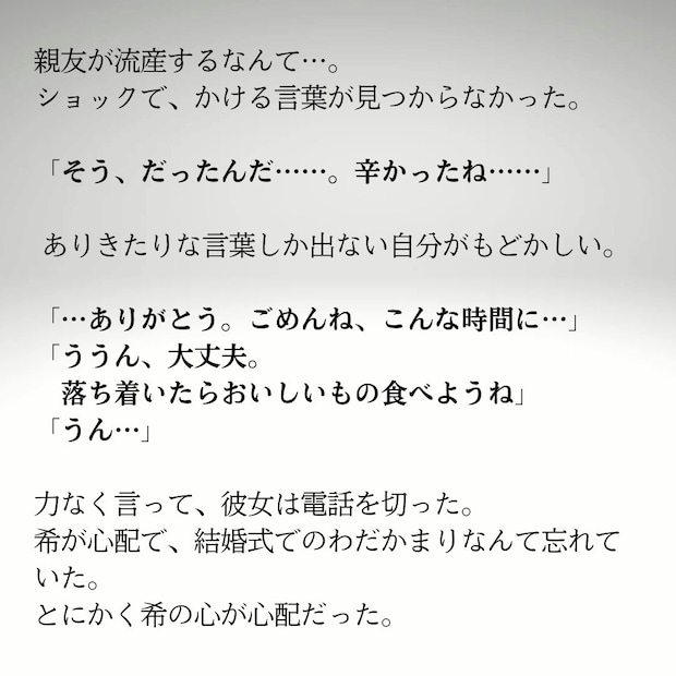 流産をしてしまったことについては、本当に気の毒でした。親友が悲しい思いをしてしまったら、そっと支えてあげたいと思いますね。
