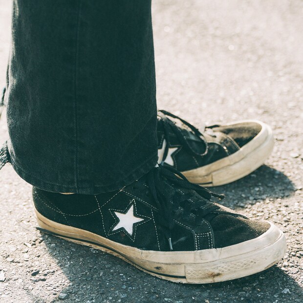 定番のワンスターをスケート仕様にアップデートした『コンバース』のスニーカー。すっきりとしたシルエットが、洗練さをプラスしてくれる。
