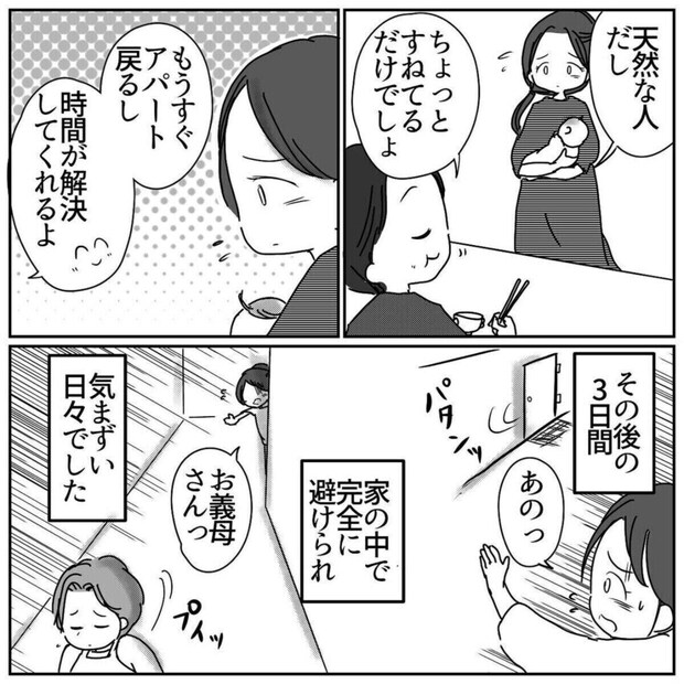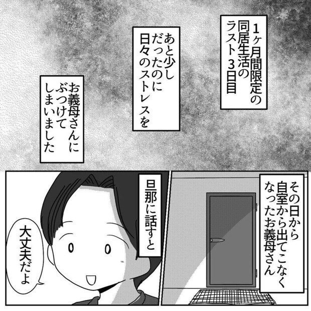 声を荒らげてしまった罪悪感にかられ、すぐに謝罪しますが、義母はリコロコ(ricoroco)さんのフォロワーさんの言葉に傷ついた表情を見せる義母。その後はアパートに帰るまで、自室に閉じこもってしまったそうです。