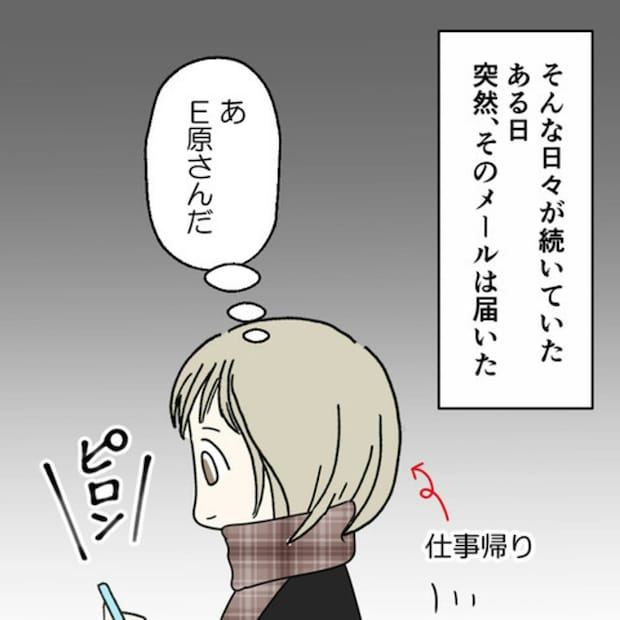 S葉さんは、E原さんと友だちとしてメールのやり取りを再開しました。恋人ではない付き合いを楽しんでいたそんなある日、E原さんからある報告メールが届きます。