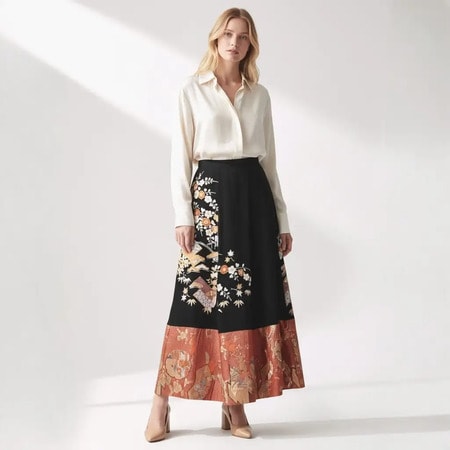 「HOUSE of MATOI」では、「黒留袖と松皮菱模様 和モダンスカート」132,000(税込)や、