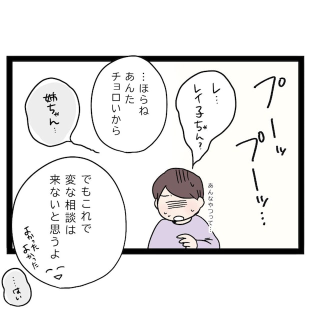 その後、プーップーッ・・と切れてしまった電話。「レ・・レイ子ちゃん?あんなやつって・・」と何が起きたのかわからない様子のまさひでに、「・・ほらね。あんたチョロいから」と言った後、「でもこれで変な相談は来ないと思うよ。よかったよかった」そう笑顔で言うと、「・・はい」と諦めたかのようにまさひでが返事をしました。