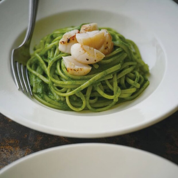 フルーティな香りやピリッとした辛みを料理にプラスできる“オリーブオイル”。素材のおいしさを底上げしてくれる頼もしい調味料は、焼く、和える、蒸すなど、どんな調理法でも使える万能さも魅力です。今回は、香り豊かな春菊のソースをからめるだけで完成する『春菊のサルサヴェルデ・リングイネ』をご紹介。ちょっと特別な“ごちそうパスタ”を味わって。