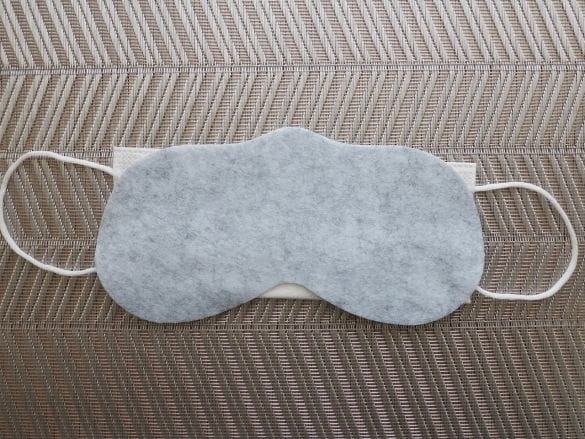 アイマスクにはポリエステルが使われていて、柔らかい肌触り。厚みがそれほどないので若干の光を感じるけれど、目元をしっかりカバーしてくれるから着けていてリラックス感があります。