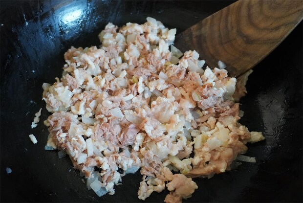 ツナと鶏ひき肉の詰め物はやさしいお味だけど、旨味がギュッと詰まっていて食べ応え抜群です!