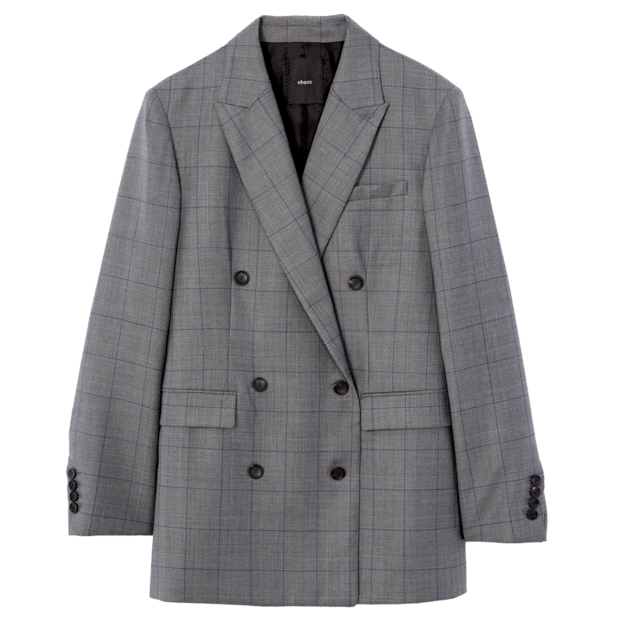 「このジャケットは形がキレイで何にでも合わせやすいダークグレー。重宝するはず」。グレージャケット¥71,500(マカフィー/トゥモローランド)