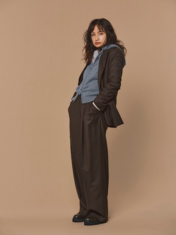 パンツ¥42,900、ジャケット¥68,200、ニットパーカ¥42,900(全てセオリー/リンク・セオリー・ジャパン)、シャツ¥44,000(トゥモローランド ビー/トゥモローランド 渋谷本店)、ローファー¥33,000(パスクッチ/ル タロン グリーズ ルミネ新宿店)