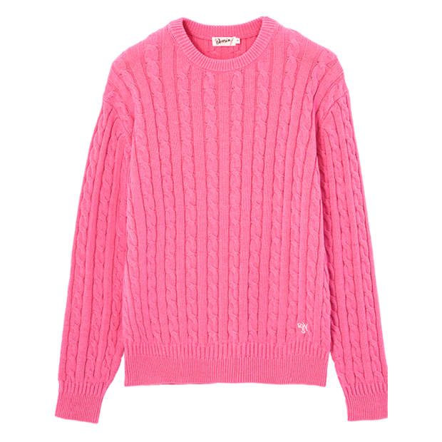 「イチゴミルクのようなピンクカラーが新鮮」。ピンクニット¥15,400(デッサン/ワールド プレスインフォメーション)