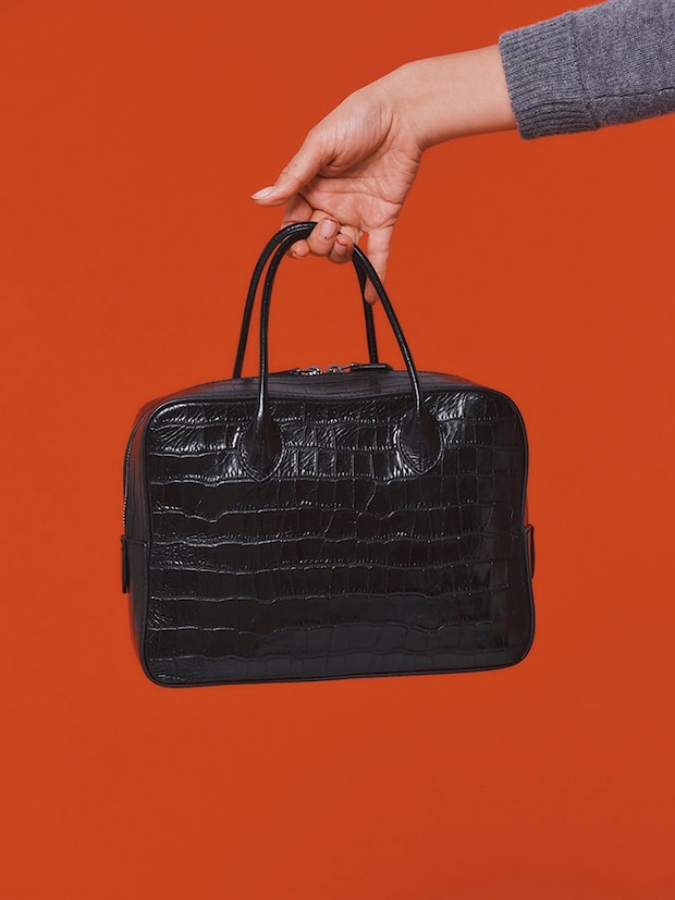 型押しレザーで高級感あり。黒バッグ¥93,500(メゾン カナウ/ヤマニ)