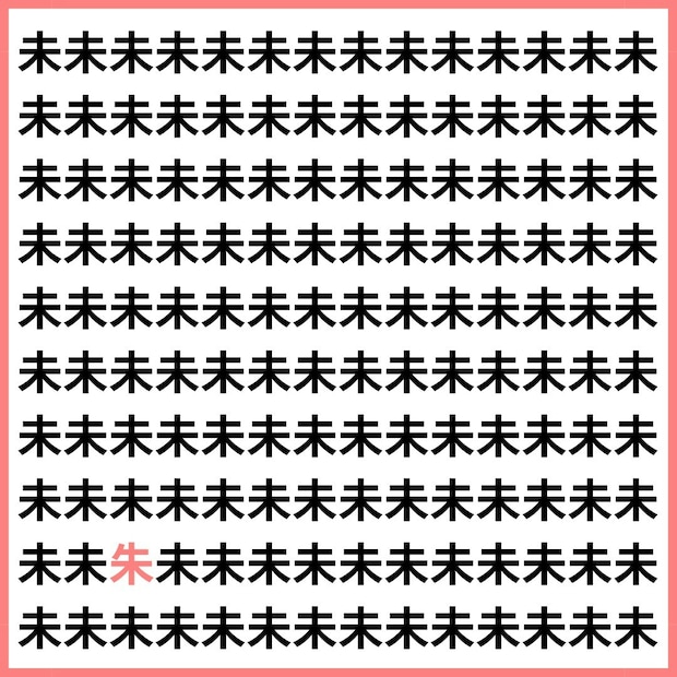 たくさんの「未」の中に、1文字だけ違う漢字が混ざっています。