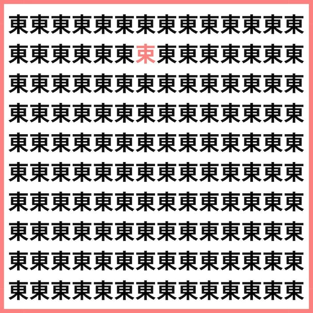 たくさんの「東」の中に、1文字だけ違う漢字が混ざっています。
