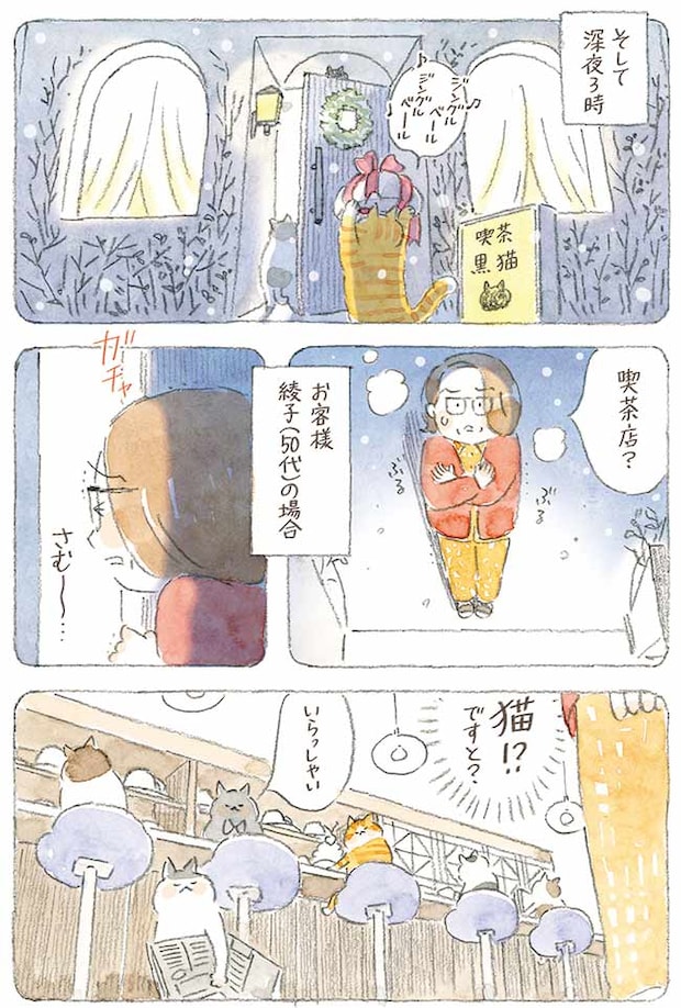 クリスマスの装いの喫茶黒猫。迷い込んだ本日のお客様は…?