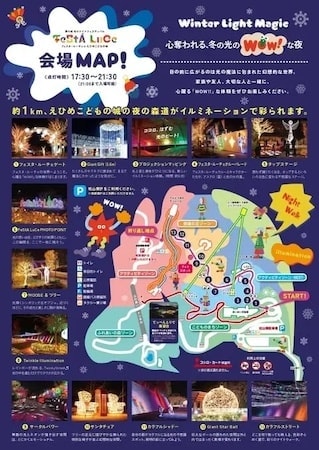 なお、入退場口は開催時間に合わせて、あいあい児童館前の広場に設置される。昼間から入園している場合も一度退園の上、入場口で手続き後に再入園が必要だ。また、砥部側駐車場からの入退場はできないため、松山側駐車場を利用することになる。