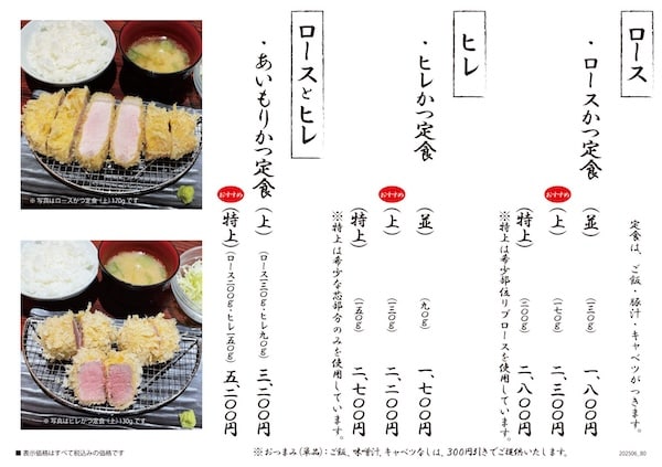 初日の12月23日(火)は、通常1,800円(税込)の「ロースかつ定食(130g/並)」および1,700円(税込)の「ヒレかつ定食(並)」を1,200円(90g/税込)で提供。また、通常2,300円(税込)の「ロースかつ定食(170g/上)」と2,200円(税込)の「ヒレかつ定食(130g/上)」は1,700円(税込)となる。