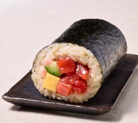 今回、同社で初めて外国産米を使用した寿司を発売する。「カルローズ・ハッピー巻」(税込430円)は、国内産の米よりも比較的安価なアメリカ産のカルローズ米を米の重量のうち約1割使用。米に合う具材に見直すことなどで、商品の中で最も安い「サラダ恵方巻」に比べ価格を約1割抑えた。