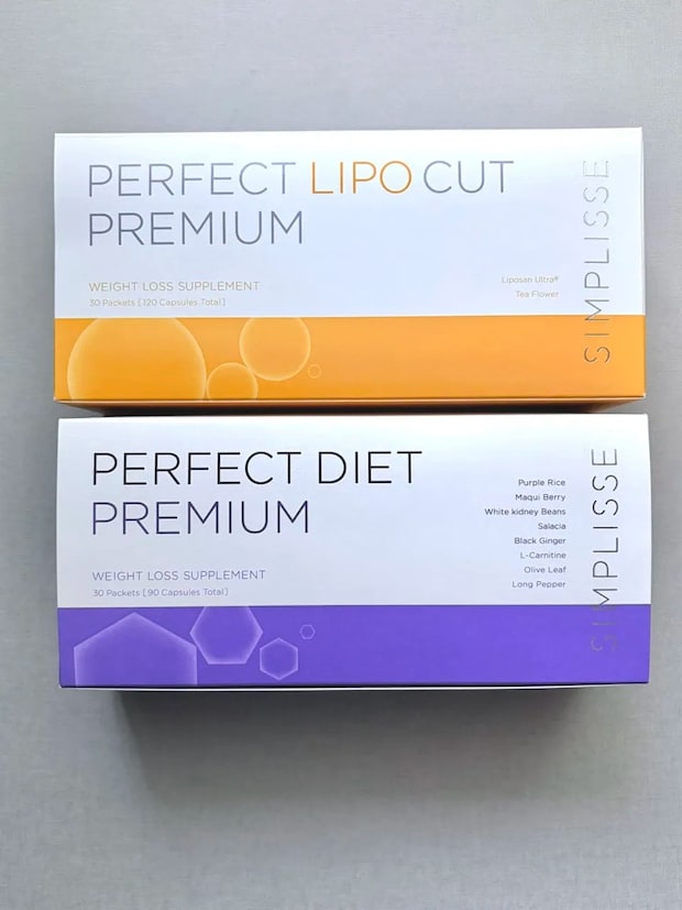 上から:シンプリス パーフェクト リポカット プレミアム 30袋/30日分 ¥9,500、同 パーフェクト ダイエット プレミアム 30袋/30日分 ¥11,000