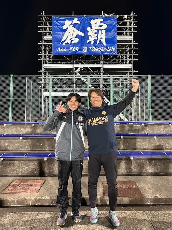 イベントのあとはそのまま千葉県から茨城県の筑波大学蹴球部の練習へ。練習後に大和田歩夢くんから優勝当日は現場にいなかったので、筑波大学蹴球部の関東大学リーグ優勝Tシャツを頂く。僕にとっては三年目で2度目の優勝。めっちゃ嬉しい。歩夢もかわいい(笑)。
