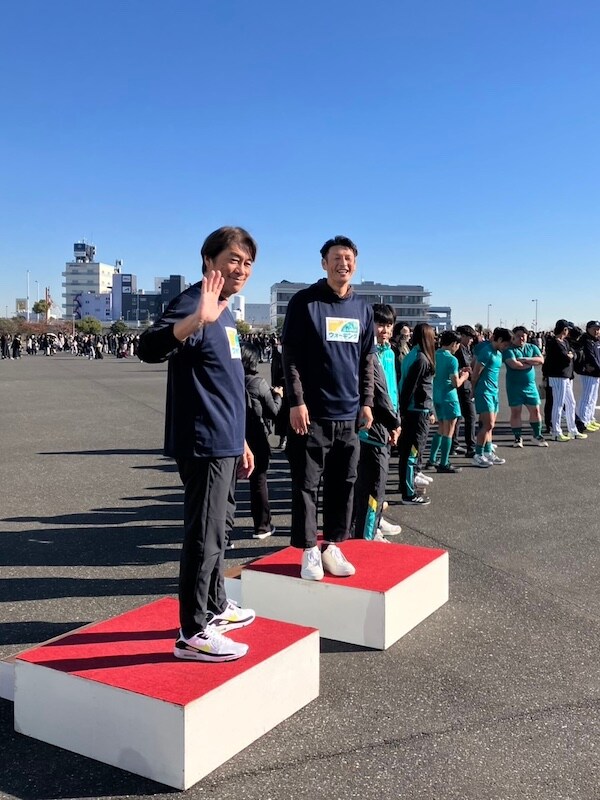 翌日はまた朝から今度は東京臨海広域防災公園 ヘリポートにてJリーグウォーキング。この日もどピーカン。空が青い!! 巻誠一郎くんの笑顔もまぶしい。
