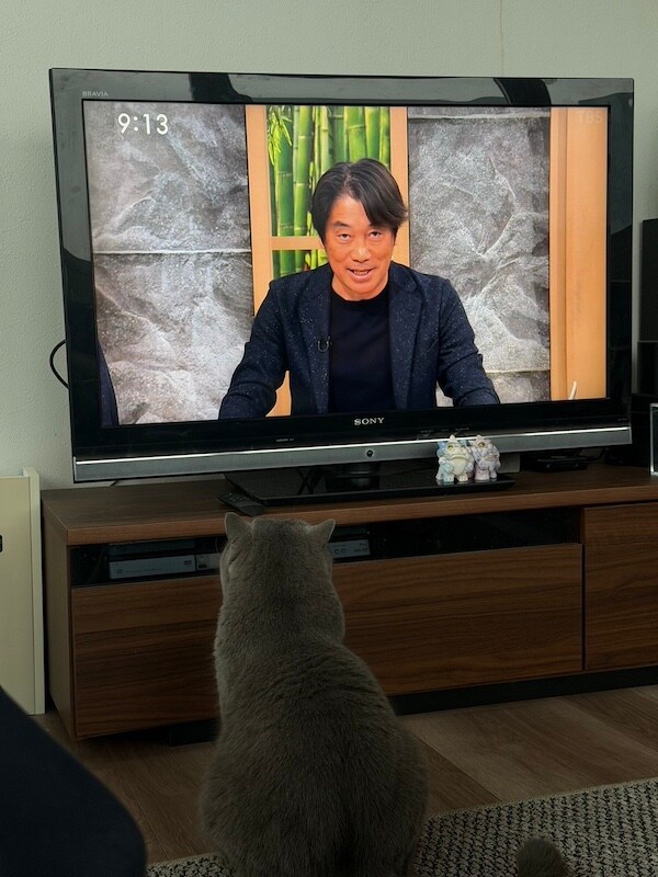 翌日は今年ラストのTBS『サンデーモーニング』。僕の友達の猫のエシェゾーくんは、いつも僕がTVに映ってしゃべりだすと、座ってじっと僕を見てくれてます。かわいすぎる。